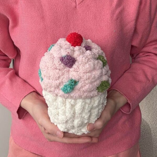Pleciona babeczka DIY – urocza maskotka z włóczki bez szydełka i drutów