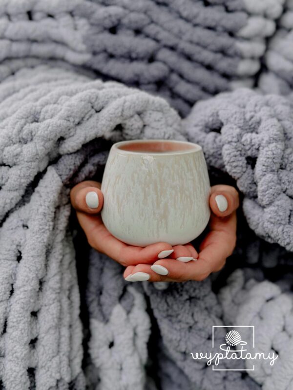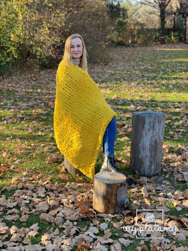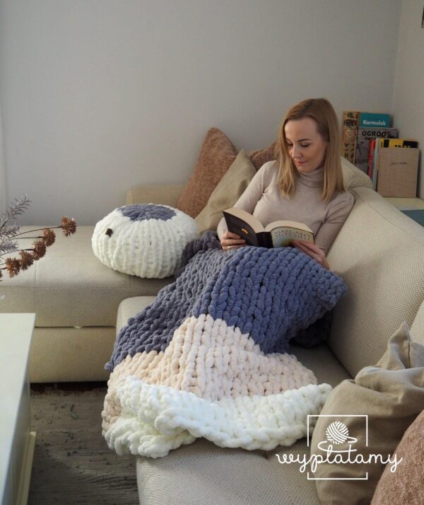 Koc wykonany z 5 motków włóczki waży około 1,25 kg – lekki, a jednocześnie ciepły i przytulny!