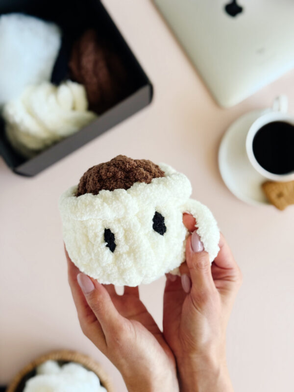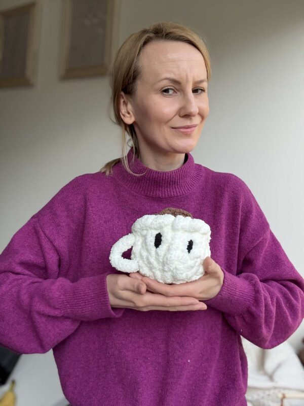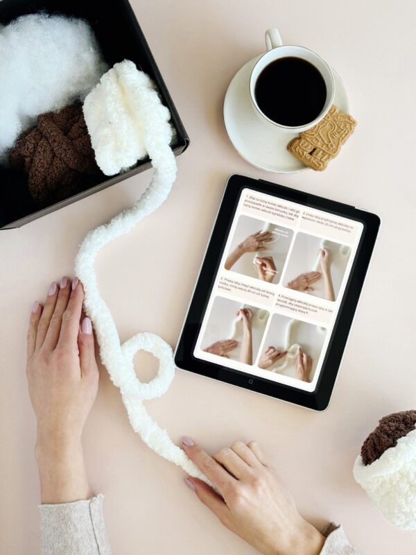 Wyobraź sobie uroczy, mięciutki kubeczek z włóczki, który zrobisz własnymi rękami – bez szydełka, bez drutów, tylko przy użyciu palców! ️